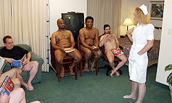 Cathy was super horny this night and to the delight of the guys dressed up as 'The Sperm Nurse'